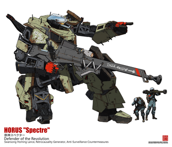 - The HORUS Spectre license, a monument to the revolutionary Interstellar Solidarity Brigades which fearlessly takes damage in place of its allies and holds its ground even against overwhelming odds